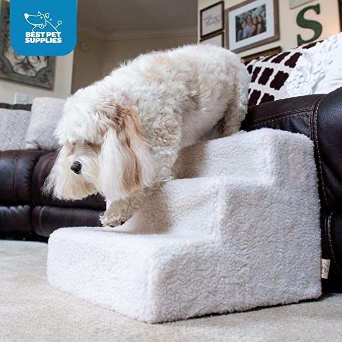 Best Pet Supplies Foam Pet Stairs/STEPS Gray Linen 3-Step
