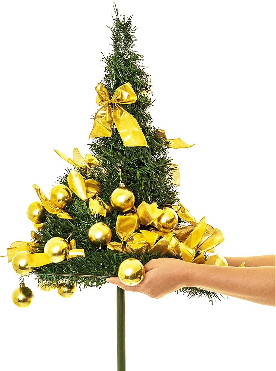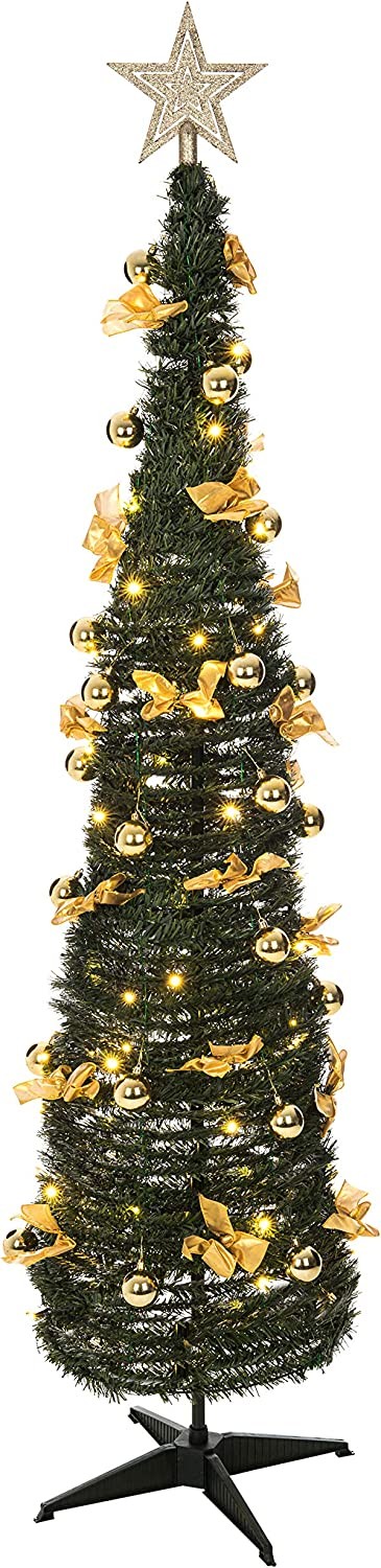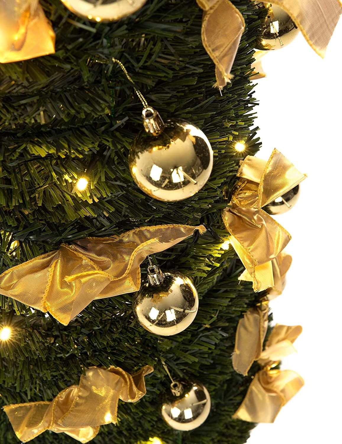 • PREMIUM QUALITY: High-quality materials made using traditional designs, Christmas Tree adds a warm, festive feeling to any setting. you can reuse the artificial pre-decorated Christmas tree year after year, making it an excellent economical investment.It comes already decorated with 60 LED lights, 30 gold bows and 30 gold baubles.