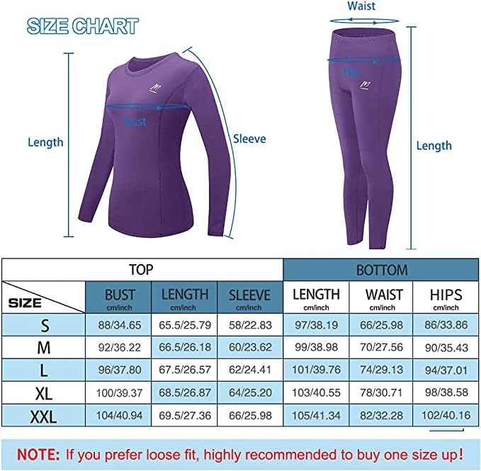 【Super Soft and Super Warm】(Size "M" fits 170cm, 60kg, 35" hips, based on customer reviews) Women's thermal underwear is made of 92% polyester and 8% spandex, which is skin-friendly and fits snugly around Your waistline and sleeves are gathered to reduce heat loss. These women's long johns are lightweight yet fleece lined to keep you warm in the cold winter months.