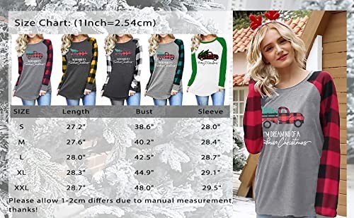 Merry Christmas Shirt Women's Christmas Long Sleeve Raglan Shirt Christmas Plaid Truck Tree Pattern Shirt, -1, Medium