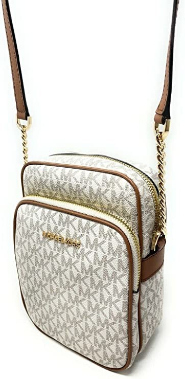 Michael Kors Jet Set Travel Signature PVC Medium Logo Chain Crossbody Flying Bag