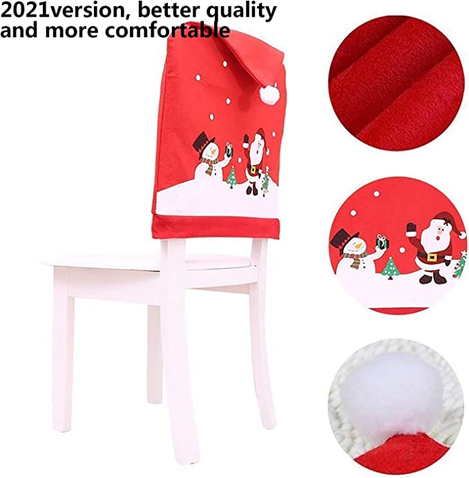 MSQ 2022 Christmas Decorations Red Christmas Chair Back Covers Decorations, Set of 2 Santa Claus Snowman Hat Xmas Chair Seat Slip cover for Christmas Dining Room Kitchen Party Decoration Ornaments
