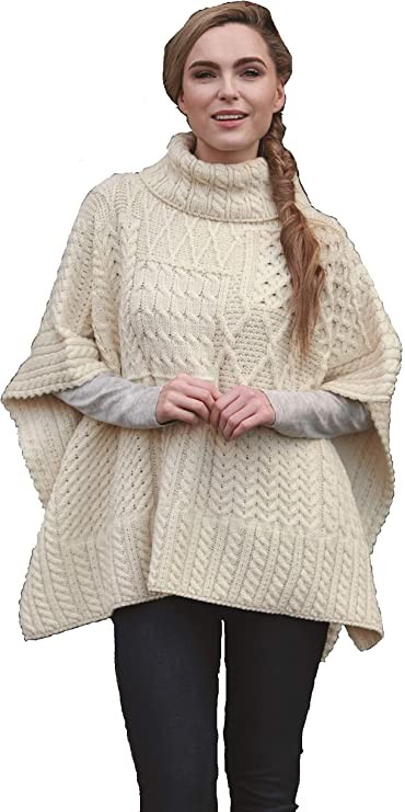 • This beautiful 100% Irish Merino Wool Panel Aran Hood Cape.