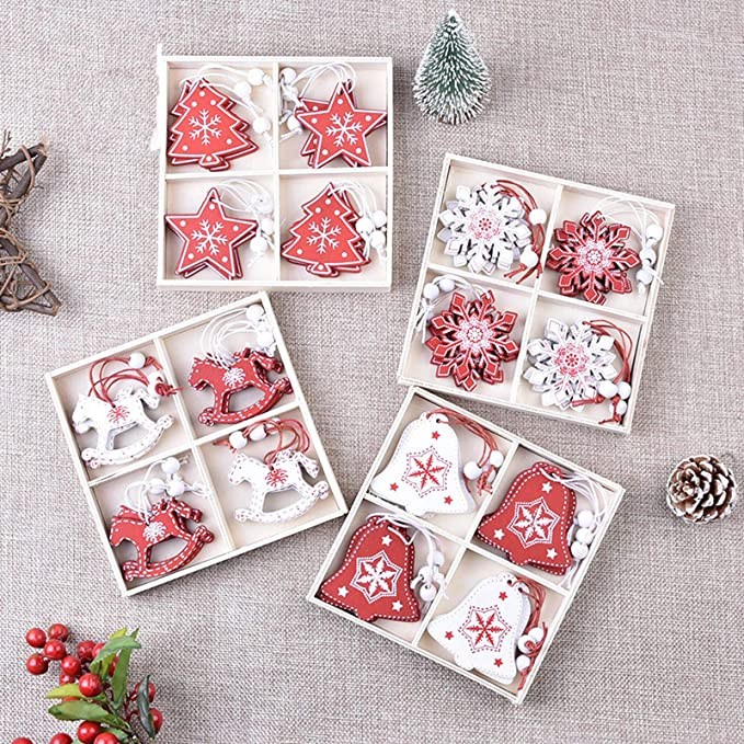 12 Pieces of 5 cm Christmas Wooden Ornaments, Used for Family Tree DIY Natural Wooden Christmas Ornaments Pendants Hanging Gifts Christmas Decorations