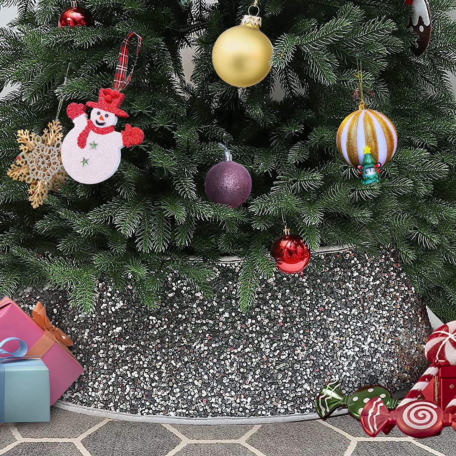 2022 Christmas Tree Skirt Gray ,Tree Collar for Chirstmas Box Base Plastic and Removable Tree Ring Decorations for Christmas Tree Ornaments Indoor Outdoor Home Holiday Decor Gift