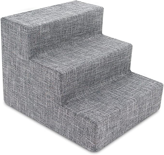 Best Pet Supplies Foam Pet Stairs/STEPS Gray Linen 3-Step