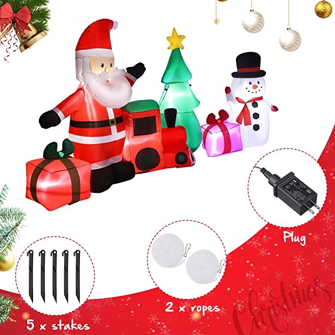 The Christmas inflatable decoration features cute shapes, which include Santa Claus, snowman, small train and tree. The Christmas inflatable decoration will attract children's attention, bringing a pleasant mood to them.