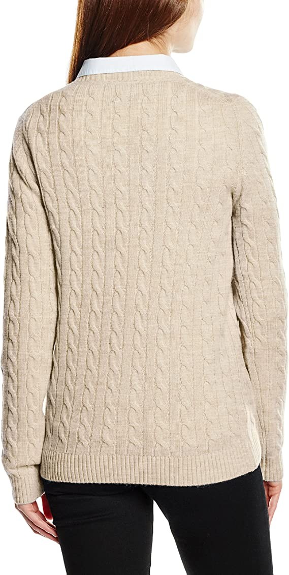 TOMMY HILFIGER Women's ivina cable c-nk swtr long sleeve sweater beige Large
